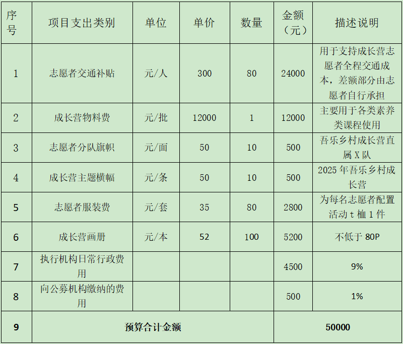 如善款有剩余,则用于下一年度乡村成长营的开展。