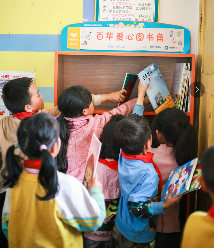 在过去的7年里,BayHelix成员成功筹集了超过1501万元人民币用于支持农村地区教育和抗击疫情。我们在云南、四川、甘肃、贵州农村的518所学校捐赠了4049个图书角,让超过14万名乡村小朋友享有高品质阅读。