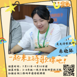 4.“是光”2025-2026学年诗歌教师招募于7月11日正式开启,本次招募将持续到9月10日。项目宣讲会已于7月22日在“是光诗歌视频号”直播完成。在此期间,我们招募了33位是光教师成为教师招募大使,并为老师们制作了宣传海报,期待有更多的乡村教师加入我们!