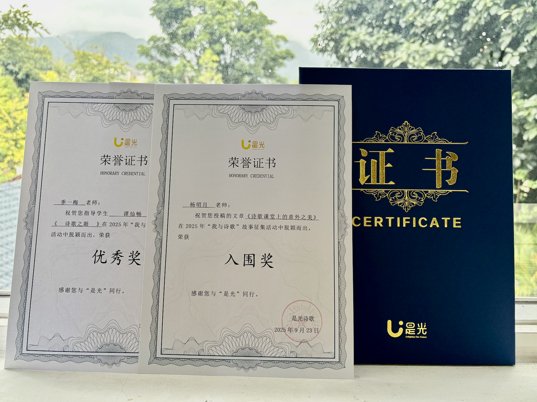 10.7月17日,项目部公布了2024-2025学年春季学期星级诗歌教室获奖名单。2025年6月18日至2025年7月10日,项目部面向本学期参与诗歌教室建设的老师进行星级诗歌教室评选征集,共有13位老师参与申请。最终评选出五星级诗歌教室1间,四星级诗歌教室2间,三星级诗歌教室3间。所有参与申请的老师都已获得梯度积分奖励,获奖教室的奖品将于秋季学期初进行发放。感谢所有参评老师们在这一学期的投入,让我们看到了各具特色的诗歌教室!