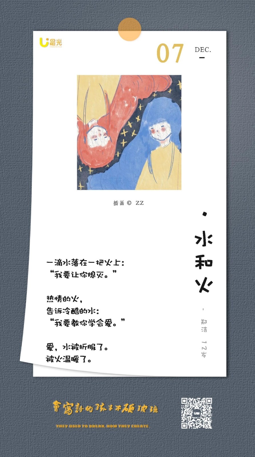 每个人的生活都会面临疾病、痛苦、分离,然而他们在更小的年纪,体会到了可能比我们更多的孤独和无助。即便如此,他们在诗里依然流露出善良和体谅,以及对家人无限的爱意,这更加弥足珍贵。