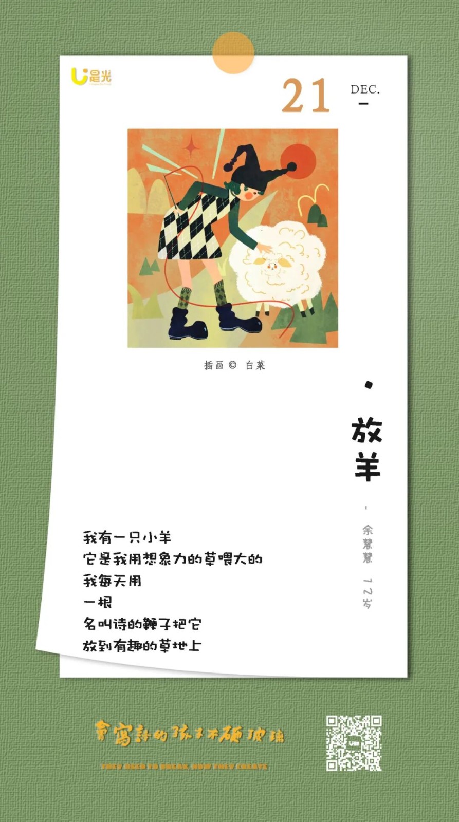 关注“是光诗歌”,看更多孩子的诗