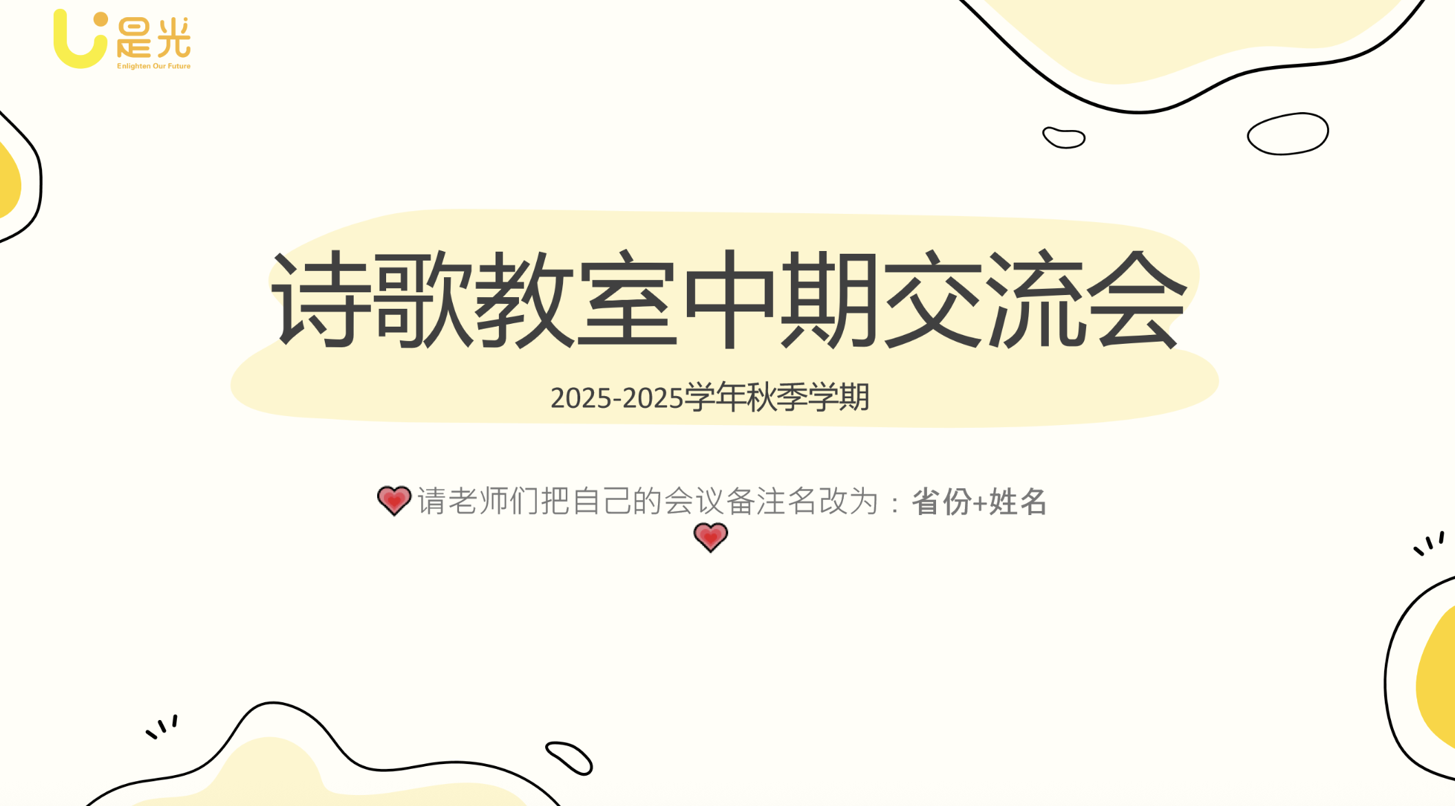 3. 11月5日,“是光”诗歌2025-2026学年诗歌校园共建启动会成功举办,此次启动会有来自17所学校的26位校长和老师参与,“是光”项目部的工作人员先介绍共建诗歌校园的具体事项,大家共同讨论诗歌校园共建的一些疑惑与解决方法。希望更多的学校可以加入诗歌校园共建计划,让诗歌在更多的校园里生根发芽。