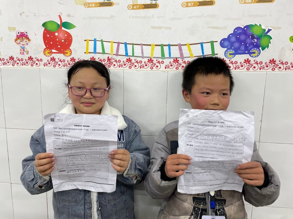 在四川全天县兴业小学,高希雅老师和她的小导演们正在创作属于自己的视频脚本。
