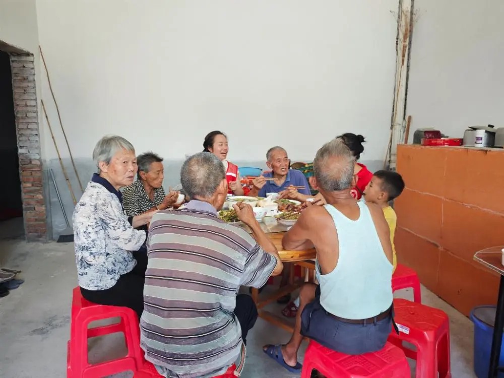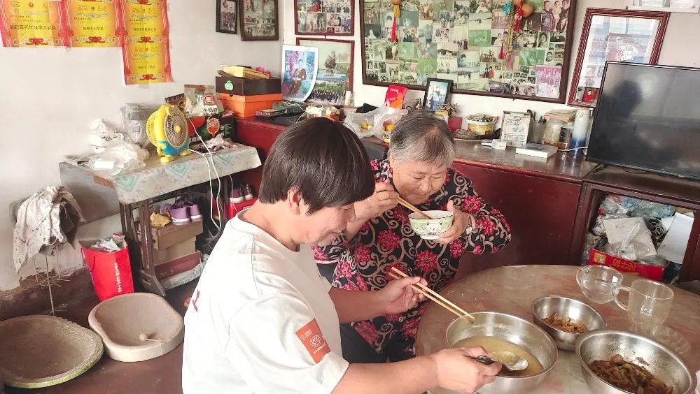 今年5月开始,常奶奶成为“爷爷奶奶陪伴计划”的服务对象,志愿者每个月都会为奶奶发放营养物资包,制作营养餐或组织聚餐活动。常奶奶的小饭桌再一次热闹起来,屋里多了一起吃饭的志愿者和便于存放的牛奶、鸡蛋、营养补充品。她也有机会走出家门,和村里的其他受益老人聚在一起,聊一聊村里二三事,有了说话的时间。