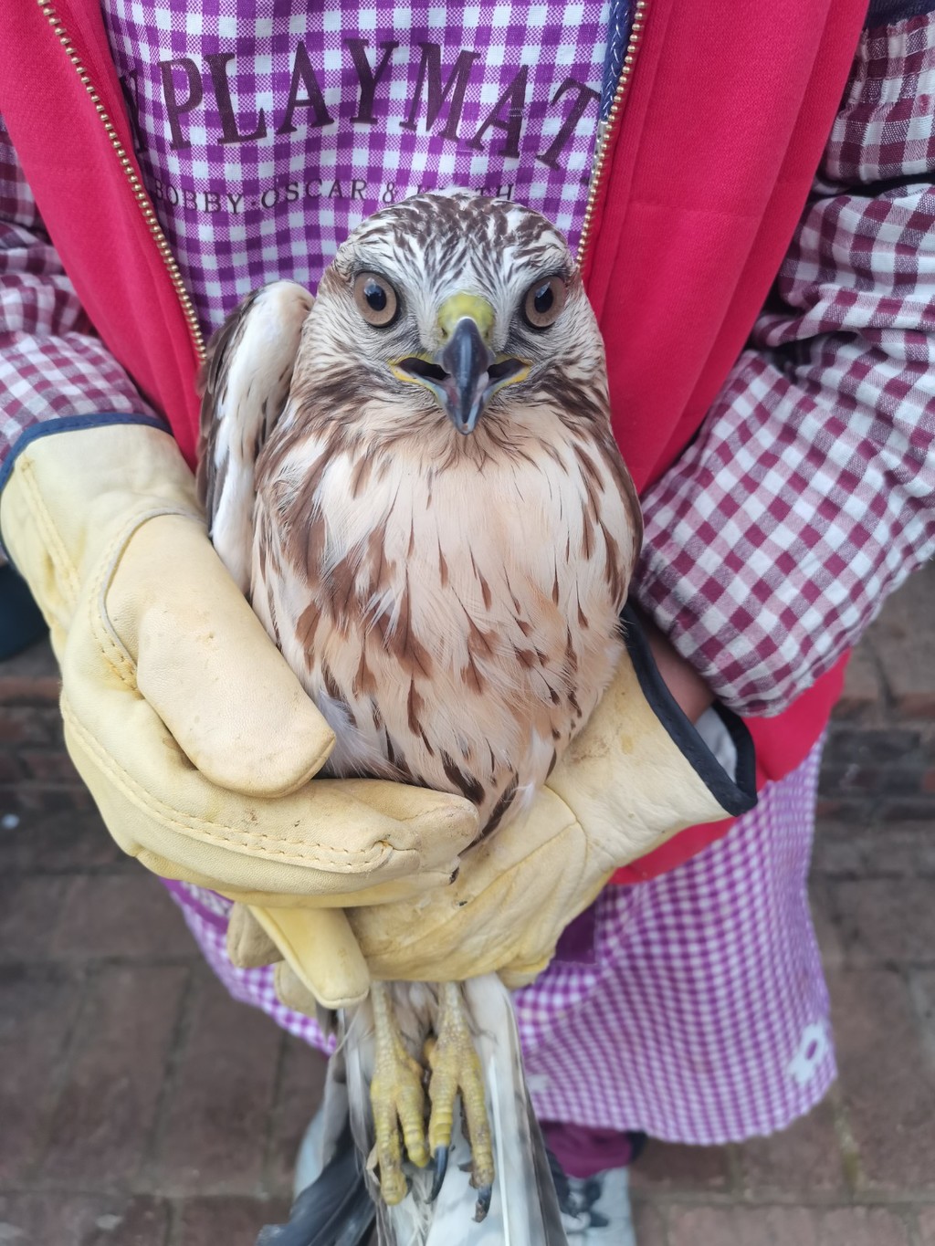 图 2 同日,祥云县公安局清华洞森林派出所移交一只普通鵟。经检查,该猛禽精神状态较弱,体型明显消瘦 |