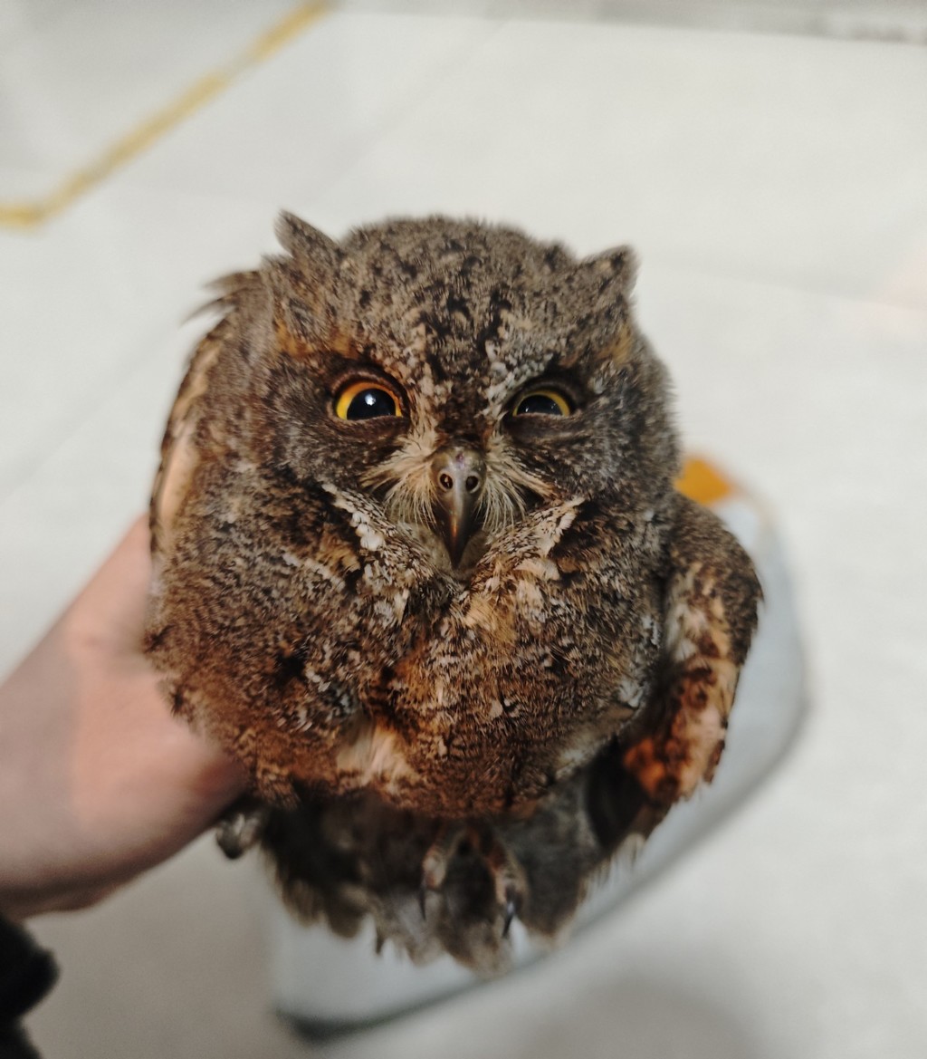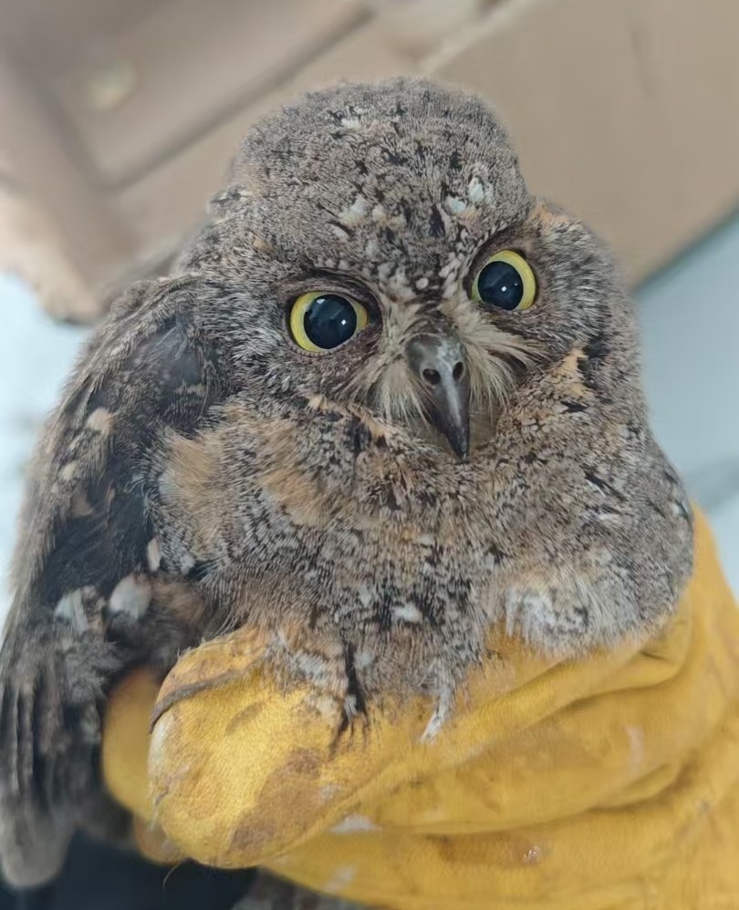 图 4 2025年11月8日,北区派出所再次向中心移交一只红角鸮。该个体体表无外伤,眼部、喙部等部位状态良好 |