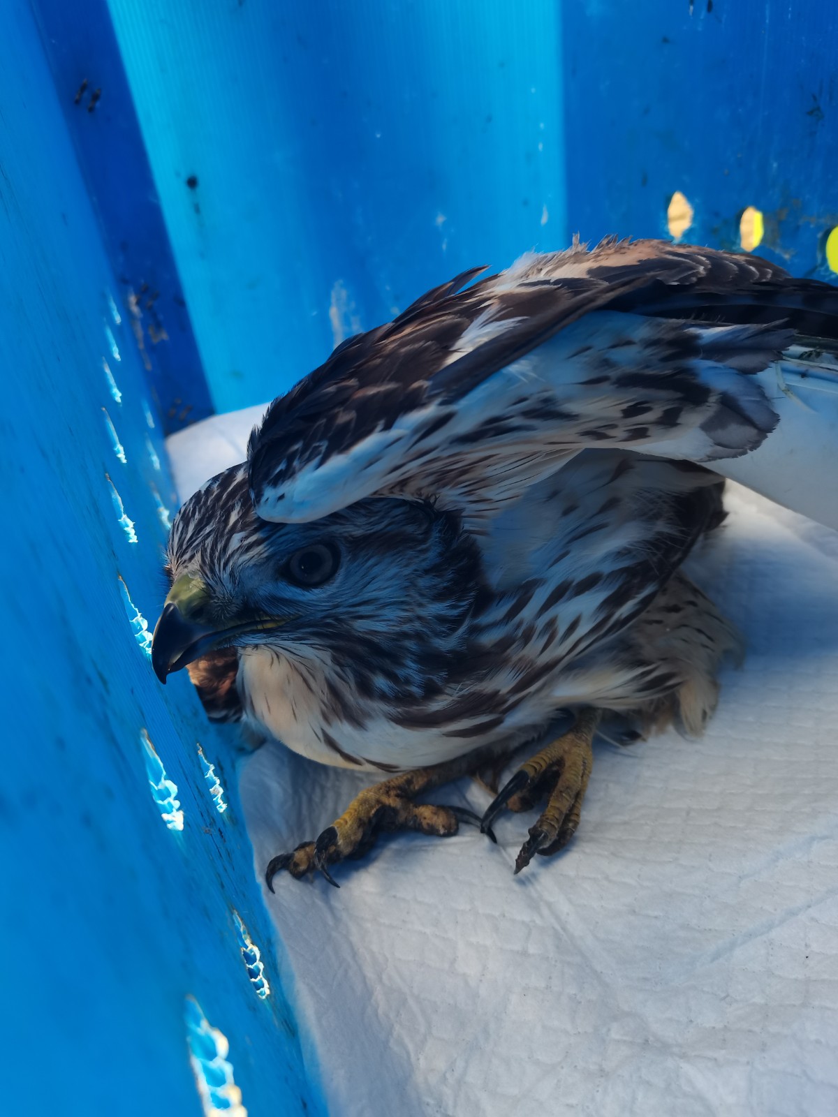 ►因饥饿导致越冬困难的普通鵟,经过一段时间休养后,在康复师的带领下,由参与中心自然教育活动的小队员,为它佩带卫星追踪器,放归自然