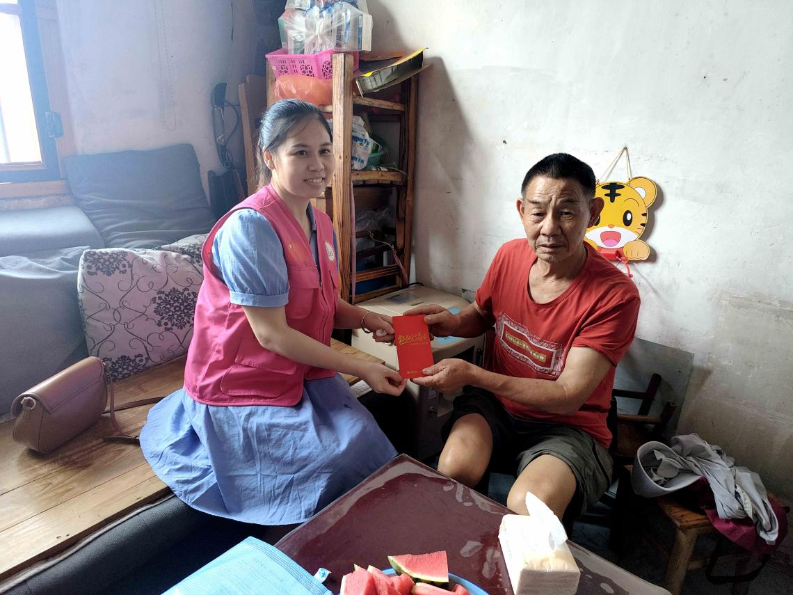 6月2日,建辉慈善基金会的志愿者来到陈二苟家里进行生日慰问,并代表捐助人送上生日慰问金1000元。
