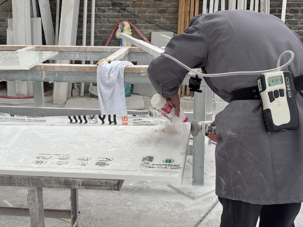 10月21日—23日|在山西省临汾市洪洞县 洪洞县是山西重要的人造石英石加工集聚区,粉尘暴露长期处于监管盲区。本次调研中,我们走访多家加工厂与安装现场,并由华北理工大学李金龙老师团队同步开展粉尘监测,记录总尘和可吸入性粉尘浓度。在户外切割与不足6㎡的密闭厨房施工中,粉尘浓度均呈瞬时“爆表”,弥散速度快、浓度极高,对工人健康构成直接威胁。 多数工人虽意识到粉尘“难受”,却未真正理解其危害程度,防护用品使用不规范。一些年轻工友萌生离开行业的念头,但更多源于劳动强度与收入问题,而非职业健康考量。 |