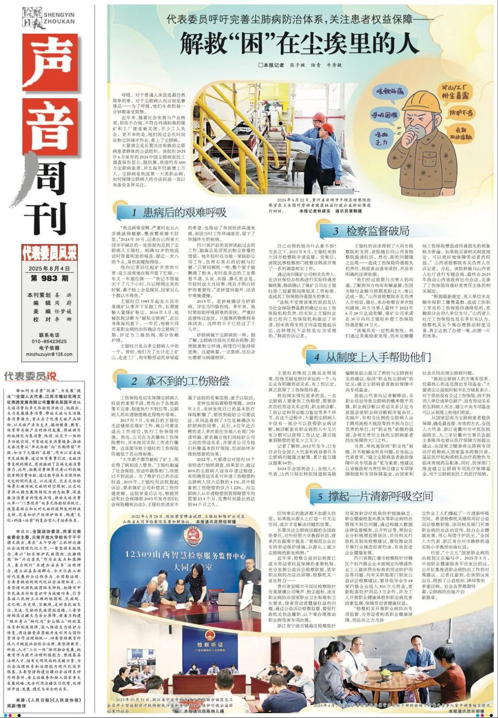 文章同时肯定了全国人大代表和政协委员的建言献策,并提及在“十五五”规划制定期间,大爱清尘携手专家、律师提出了对策建议。期待在国家最高检的支持下,尘肺病防治能开启新篇章。