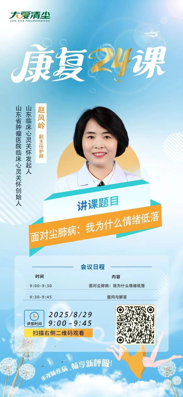 本月,我们特邀知名医生带来《尘肺病的基本知识与自我管理》《面对尘肺病:我为什么情绪低落》等专题课程,从专业角度解析情绪困扰,为患者及家属提供心理调适的有效方法。两场课程通过线上直播形式,让专业指导跨越地域限制,直达需要帮助的家庭。我们相信,持续的健康教育和心理支持将帮助尘肺病患者以更积极的心态面对疾病,提升生活质量。