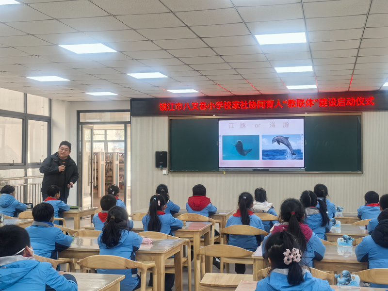 12月,钱博士走进镇江市“江豚保护主题学校”--八叉巷小学,为师生带来一堂生动的江豚保护课。他详细讲解了长江江豚保护的重要意义,并介绍了项目开展以来的保护历程与成果。