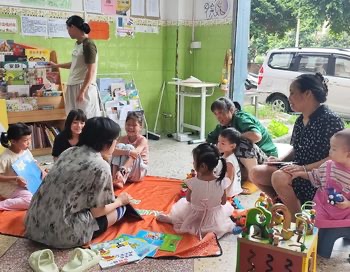 社区妈妈作为志愿者,和孩子们一起开故事会