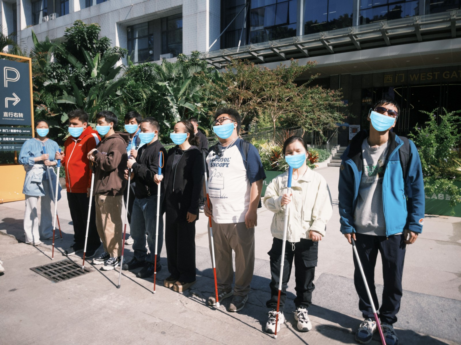 12月9日、16日,由三位同侪导师带领视障定向出行课进入户外实践环节。学员们综合盲杖使用技巧、导航使用、户外路线规划、求助等技能,在志愿者一对一的无声陪伴下,尝试进行分组独立出行,进行户外店铺打卡和定向地铁搭乘学习。