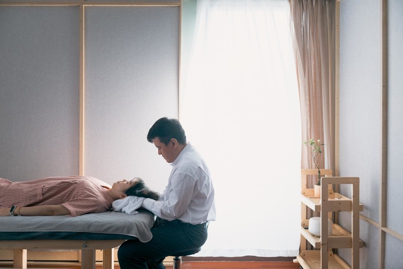 (图为视障按摩师耐心讲解和专注提供正念按摩)