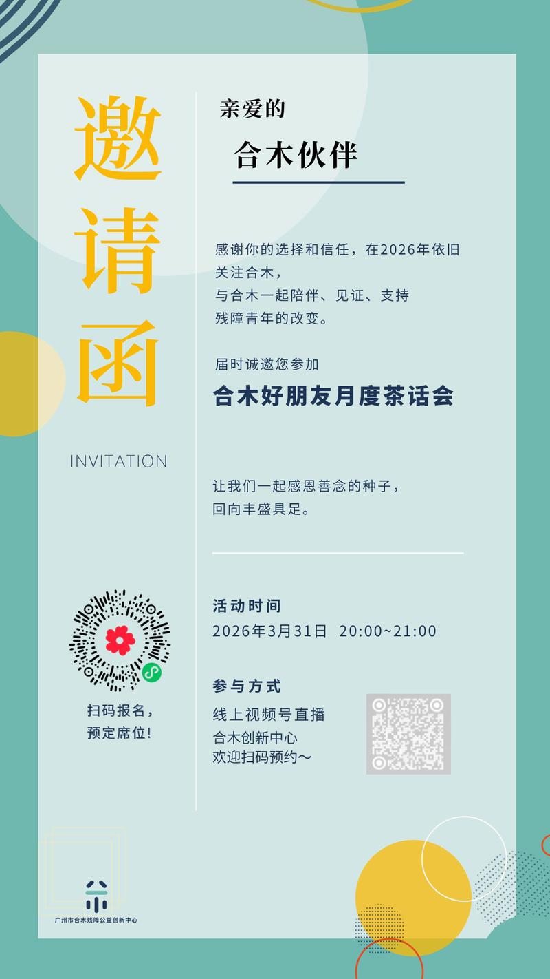 / 如果你也认同合木,欢迎你加入月捐[残障青年城市扎根]支持我们,让我们可以更稳定地前进,支持更多残障青年获得生命改变。