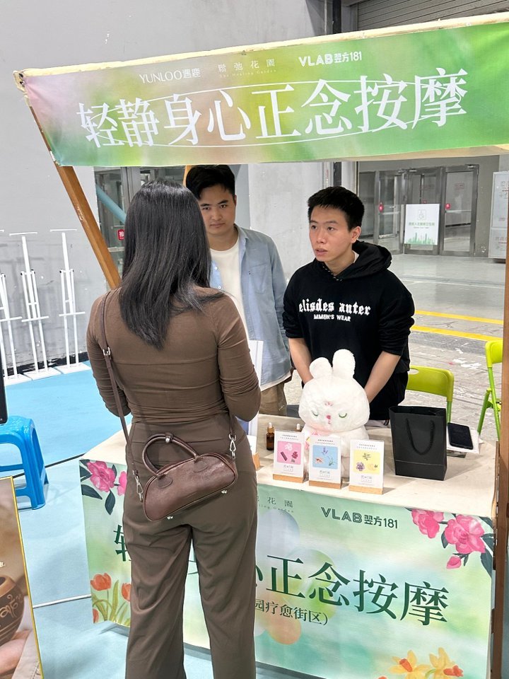 由合木孵化的社企“轻静身心正念按摩”亮相美博会线下市集。