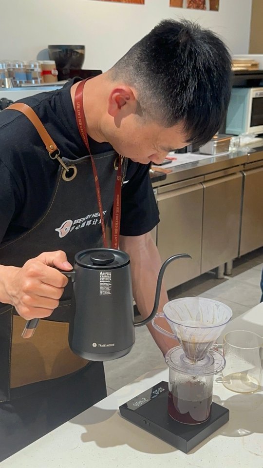 (图为视障实习咖啡师在做冲煮)