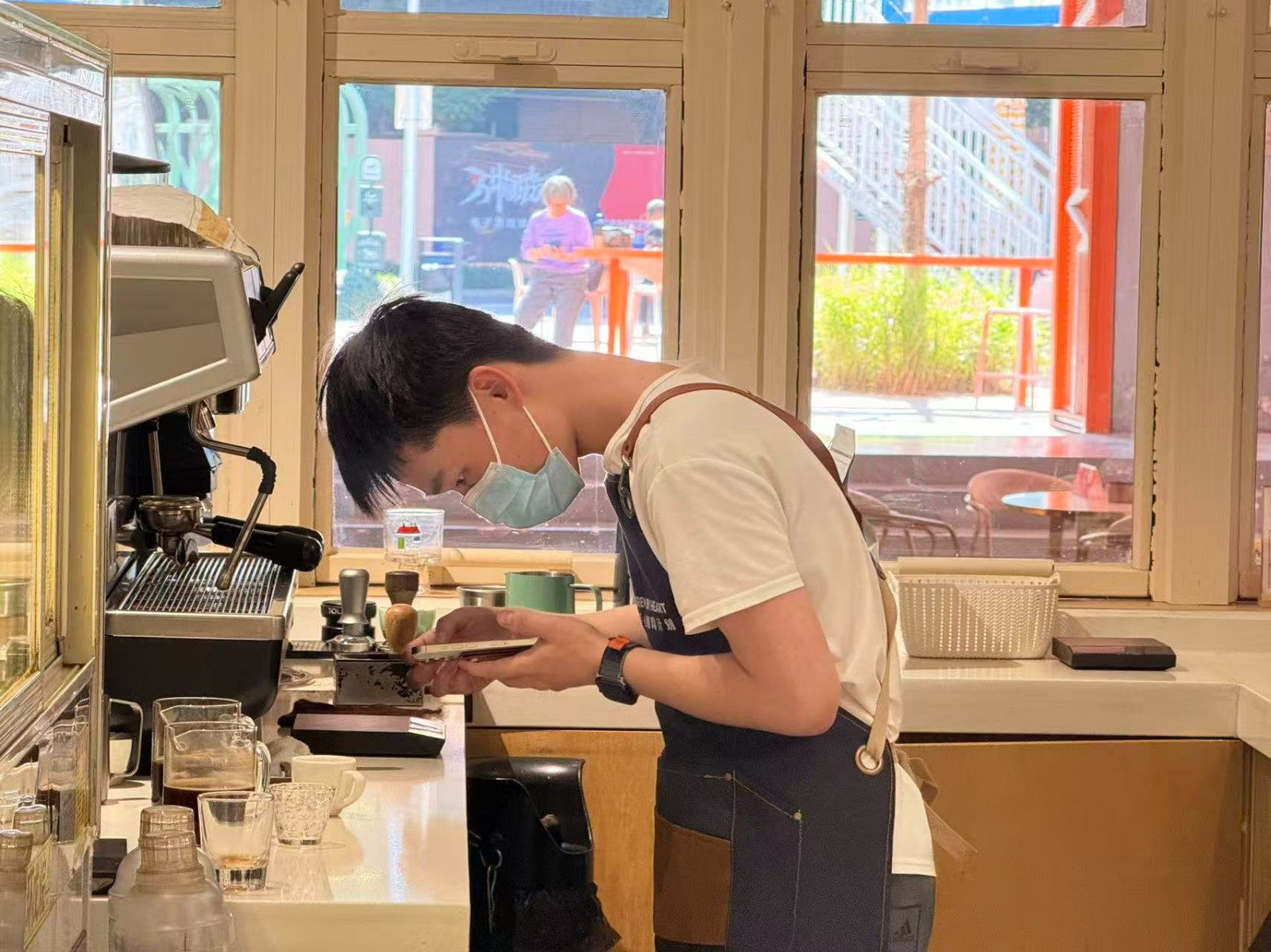 视障咖啡师小宝说:“在这段实习做咖啡师的日子里,我感觉手艺越来越熟练了。除此之外,我发现自己也比以前更愿意和其他人交流了,在这段时间交到了很多朋友,我很喜欢这里的生活,年后回来我也会尝试在广州这边找到一份咖啡师相关的工作。”