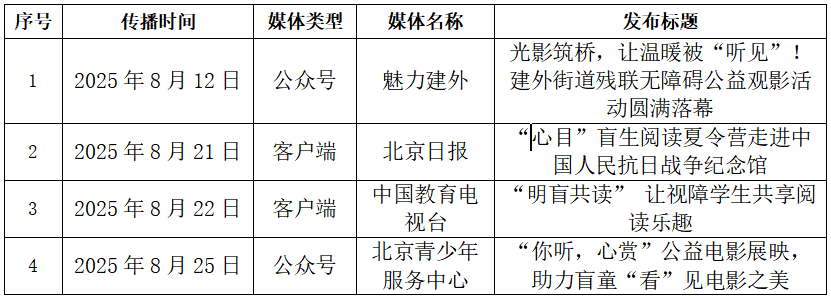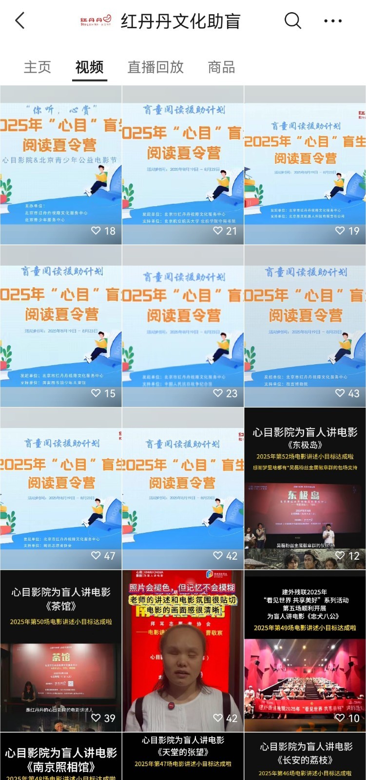 其他平台:“红丹丹文化助盲”微博、“心目影院”微博、快手号等同步转发相关内容,向志愿者、视障朋友、合作伙伴、捐赠人及社会公众展示工作动态和成果,传递助盲理念和价值观。 |