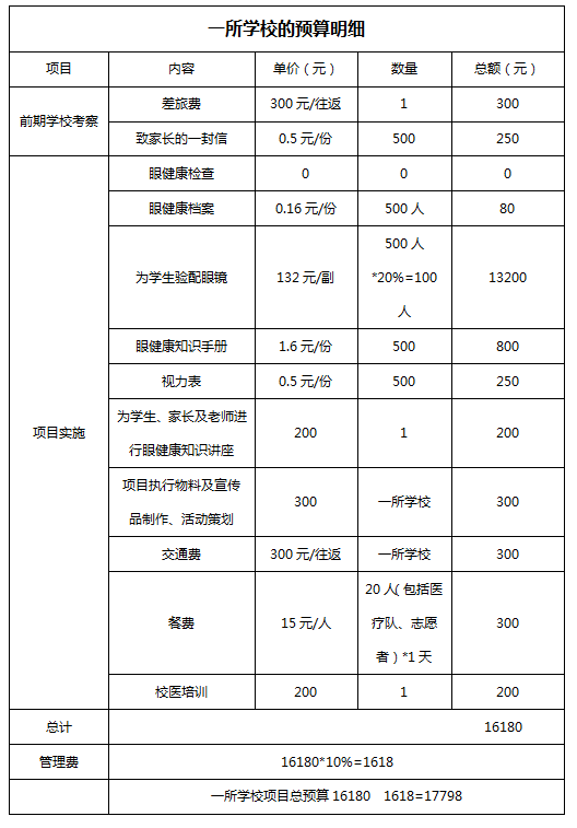 ③根据以往项目实施情况,学校需配镜比例约为20%。