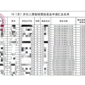 助老金公示:根据内蒙古佛教协会(杭锦旗)提交的罗贝召庙、乌吉尔庙、扎日格庙、哈毕日格庙、沙日特莫图庙、吉祥圆满寺、沙日召庙、格更召庙的资料,经项目组审核,计划为36位法师发放助老金。