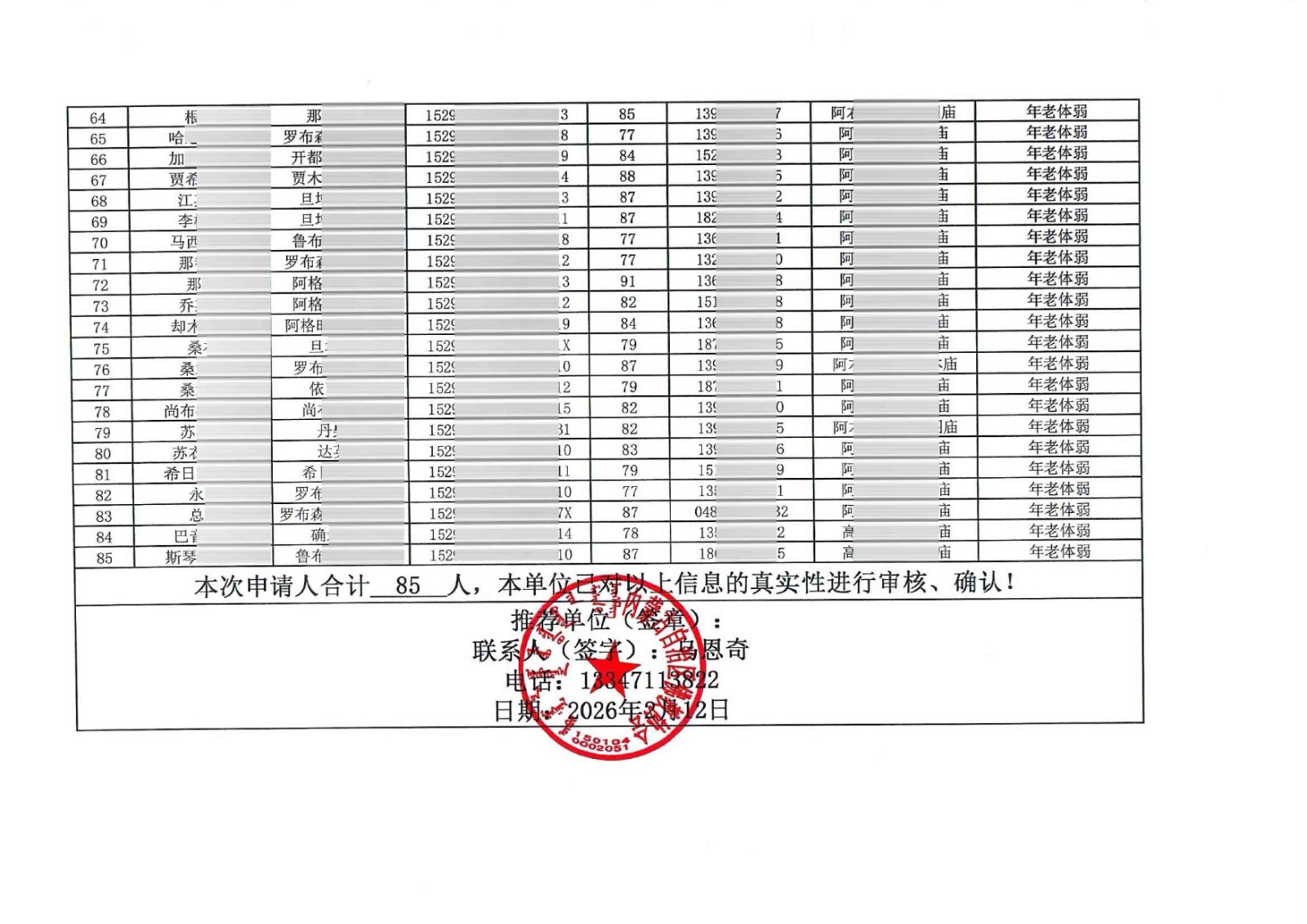 74 、阿***格 1942, 84岁