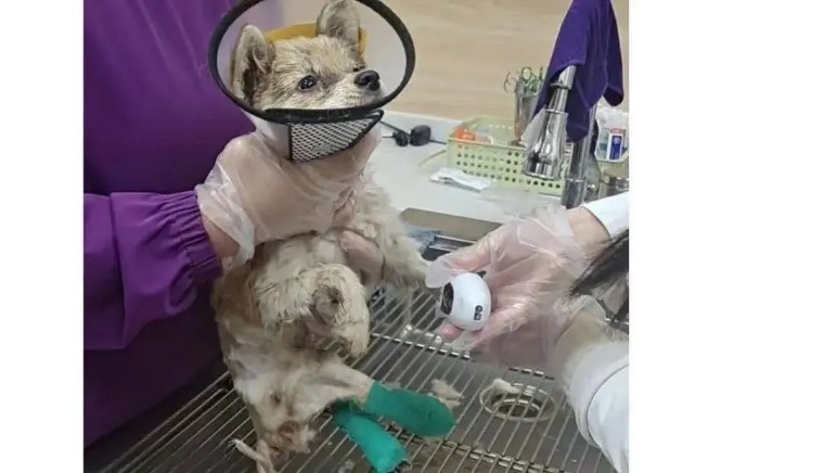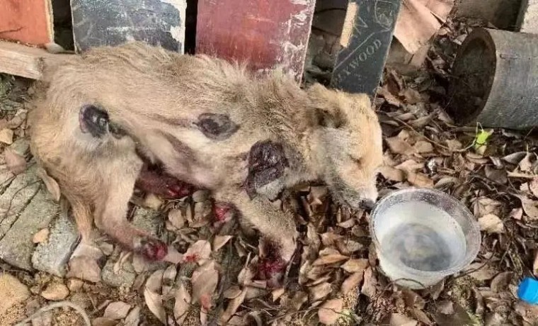 救助被黑心货车拖拽血肉模糊的狗狗