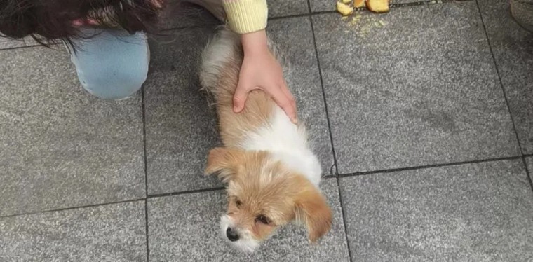 救助被遗弃在路边的小奶狗