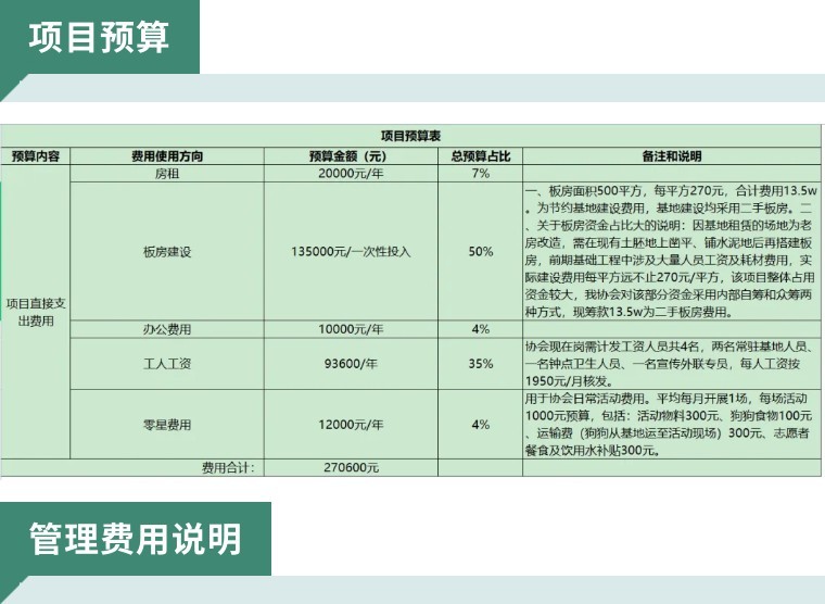 项目筹款目标 | 实际筹款总额 | 运营人员成本 | 公募管理费 |