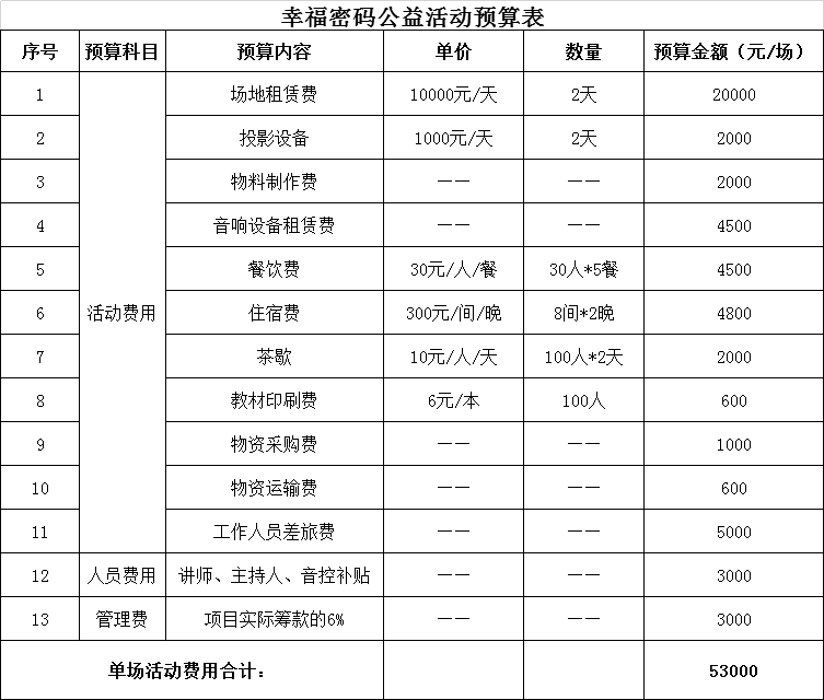 管理费说明:本项目实际筹款的6%为公募组织管理费,包括必要的人力成本以及必要的行政办公支出(房租、水电、网络、资料邮寄等)。