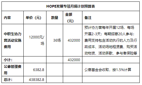 若项目执行完成后善款仍有剩余,剩余的善款将继续用于下一年中职生成长支持。