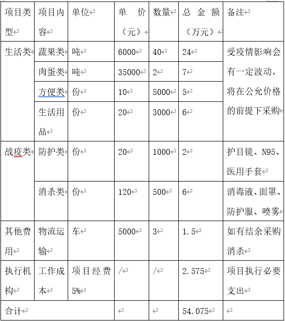 注:根据疫情实际情况,采买物资内容会有所调整,以实际发生披露为主。