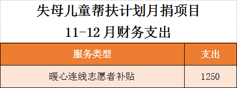 11月-12月我们共收到4452.7元善款,