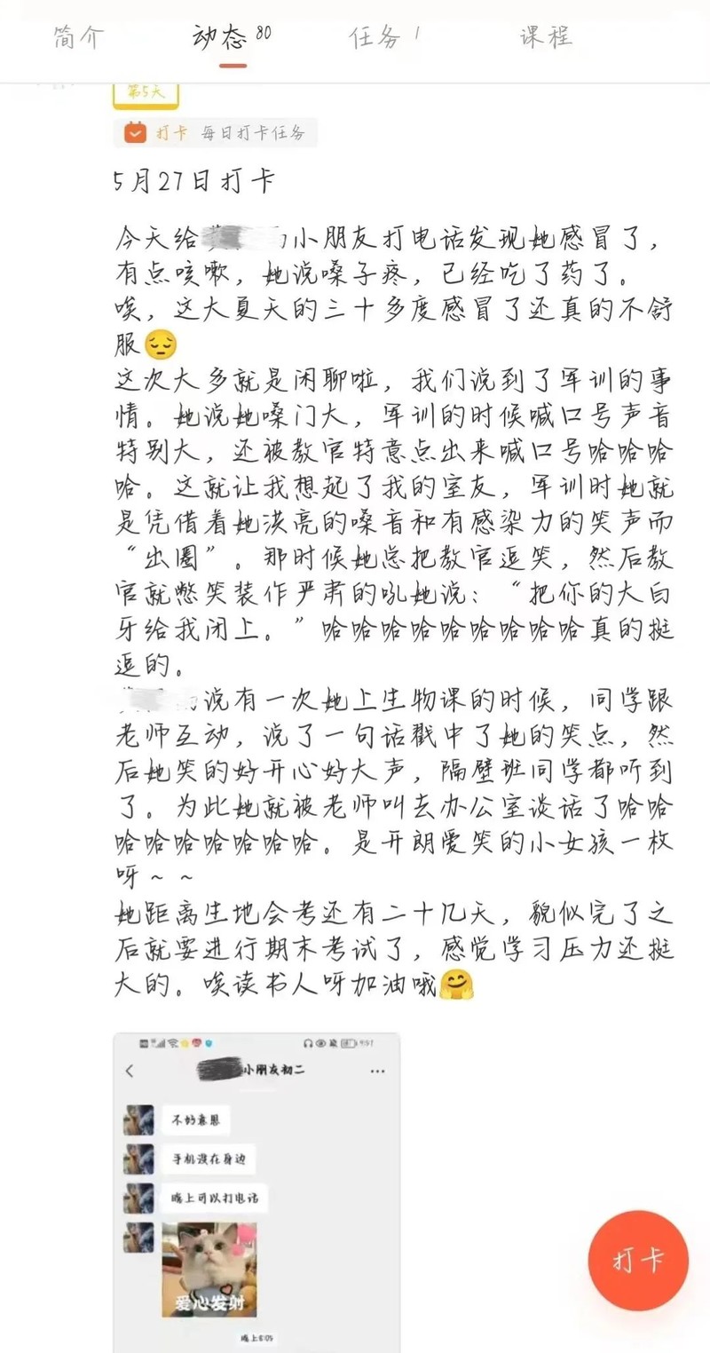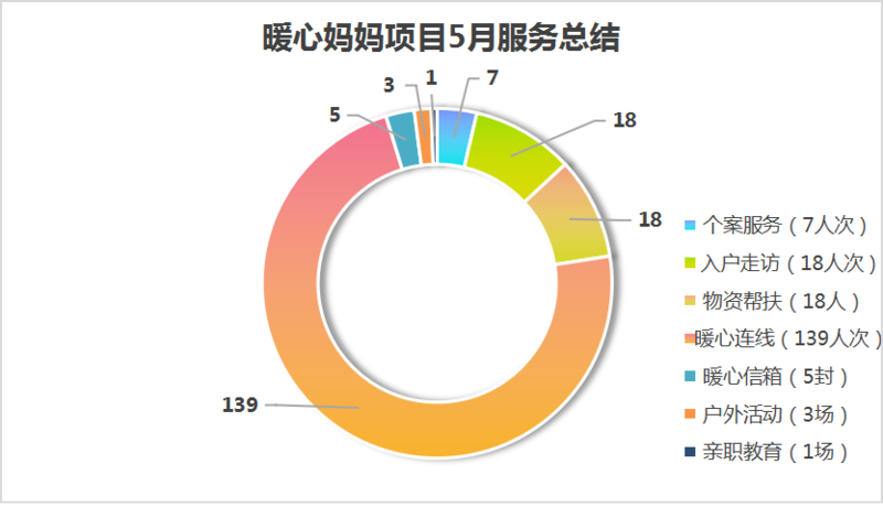 5月,“暖心妈妈”以连线的形式陪伴心崽共计139人次。“暖心妈妈”通过电话或微信的方式和心崽进行一对一沟通交流,了解心崽日常状况,对心崽进行情感陪伴和学业辅导。