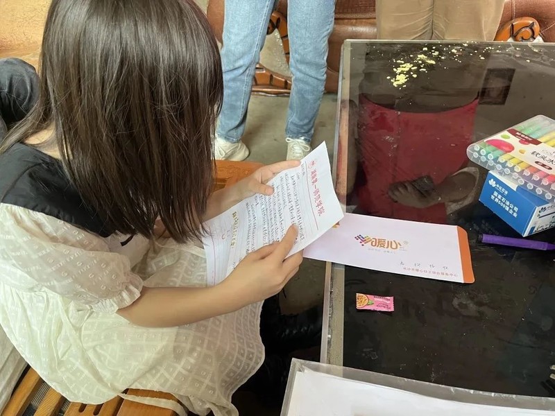5月,联合湖南第一师范学院志愿者进行了暖心信封的传递,为双江口镇的5名心崽送去了志愿者的信件,志愿者和心崽之间的千言万语,滚滚浓情,化为青笺上的点滴。简短的语言张扬着浓烈的情谊,一封封信件是爱意的传递,拉近两颗心灵的距离。