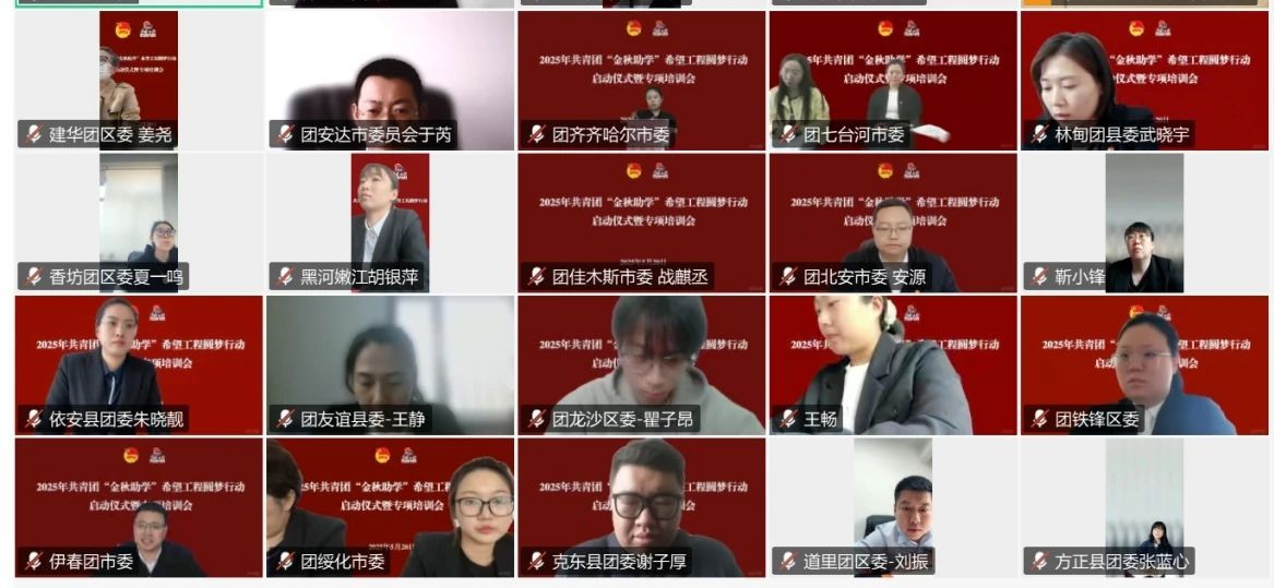 5月20日,2025共青团“金秋助学”希望工程圆梦行动的启动仪式暨专项培训会通过线上召开,省希望工程捐助中心、省青基会有关领导,各市(地)、县(区)团委负责同志及项目实施人员共200余人在线参与,共同开启助学圆梦新篇章。