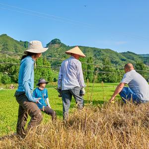 9月的唐头村,稻田里日益饱满的稻穗,沉甸甸地垂着,风吹过,金灿灿地随风摇动,满是丰收的实感。在稻田中的一条罕有人走动的石头小路上,数位村民与我们一起打造了一条农田生态廊道。