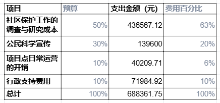 截止2025年8月,项目共计筹得善款148万余元,项目已按照执行计划陆续开展公益服务。截止2025年8月底,共计支出68.8万余元,具体支出情况如图。