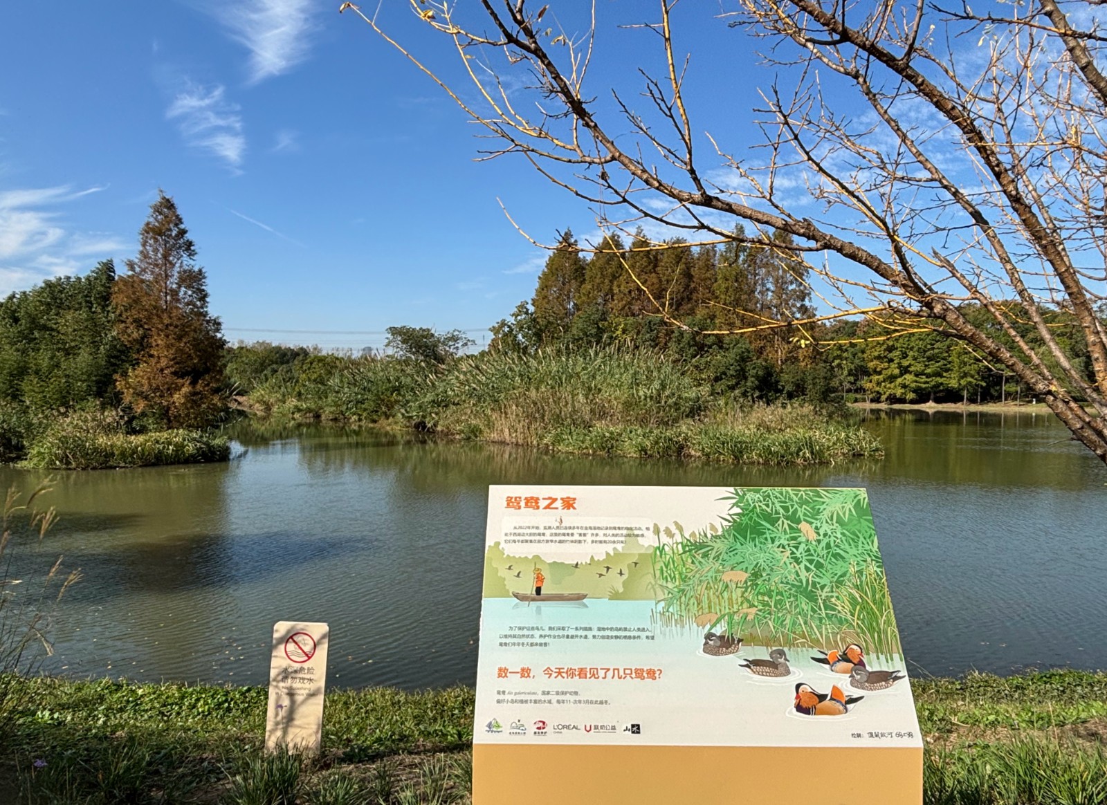 秋深时节,金海湿地又悄然迎来了它的老友们。在本月的鸟调中,我们不仅记录到绿翅鸭、白骨顶的身影,也在熟悉的水域与今冬的鸳鸯如期而遇。为迎接这些远道而来的客人,一批全新的科普牌也静静在园中安了家——就在鸳鸯常驻的水边,我们为它们设立了专属的“鸳鸯之家”解说牌。