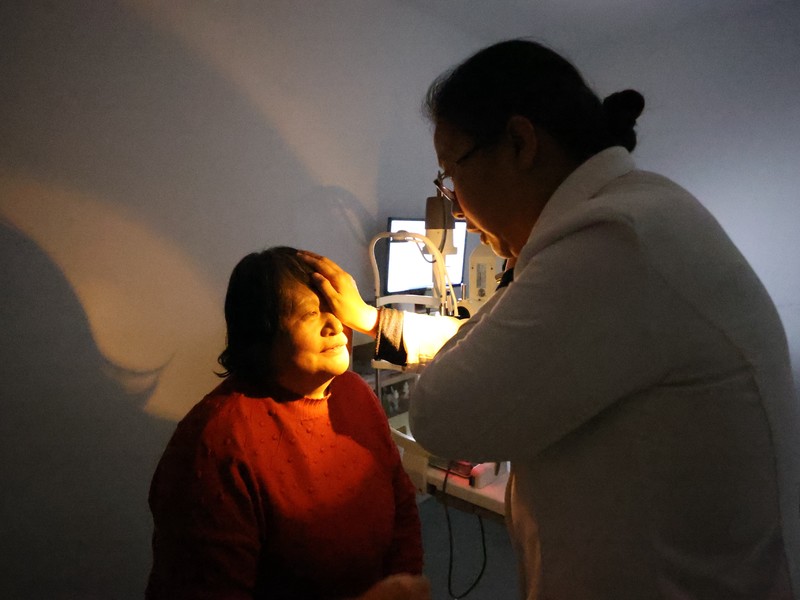 视力检测时,孙阿姨右眼已看不清医护人员的手