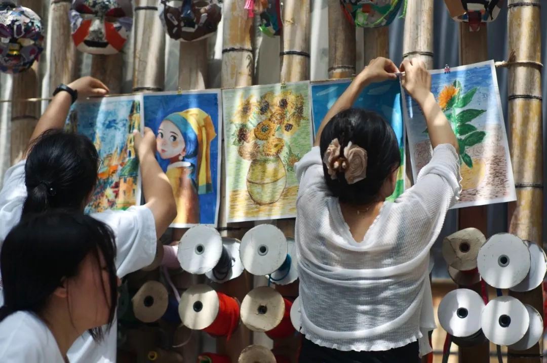 #扬帆乡村美术老师千人种子公益培训 最后一天的培训活动安排在古木参天、绿荫蔽日的香樟公园内。关勇老师巧妙地利用这片自然的画布,引领着一群怀揣教育热情的老师们,展开了一场别开生面的户外创意课堂。在这片大自然的怀抱中,老师们以树枝、树叶等自然材料为笔,用无限的创意与灵感,勾勒出一幅幅生动的地景装置艺术。关老师不仅传授了制作技巧,还强调了作品的保存与署名的重要性。在关老师的悉心指导下,老师们不仅学会了如何创作,更学会了如何珍惜和呈现自己的作品。下午的结业作品展如期而至:老师们以小组为单位,分工合作,共同完成了海报设计、水墨作品展示、标签制作等一系列工作。在结业仪式上,关老师分享了种子计划的未来发展蓝图和关注方向,对参训老师们寄予了殷切的期望。随后,老师们围坐一堂,共享着亲手制作的晚餐——饺子。结业酒会上,欢声笑语此起彼伏,老师们沉浸在欢乐的氛围中。这几天的沉浸式学习不仅让老师们收获了知识与技能,更让他们感受到了团队合作的力量和美育教育的魅力。在最后的合影环节,大家共同喊出了“种子发芽了!”这一寓意深刻的口号,象征着老师们的教育事业如同种子般生根发芽、茁壮成长。详情点击:https://mp.weixin.qq.com/s/EYRUkguuscIBzxuGHbU7CA