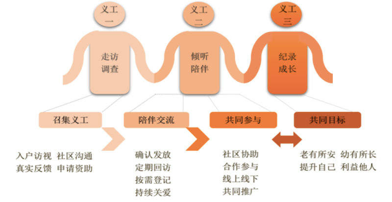 2、社会组织负责项目执行指导和监督。义工执行操作流程如下: