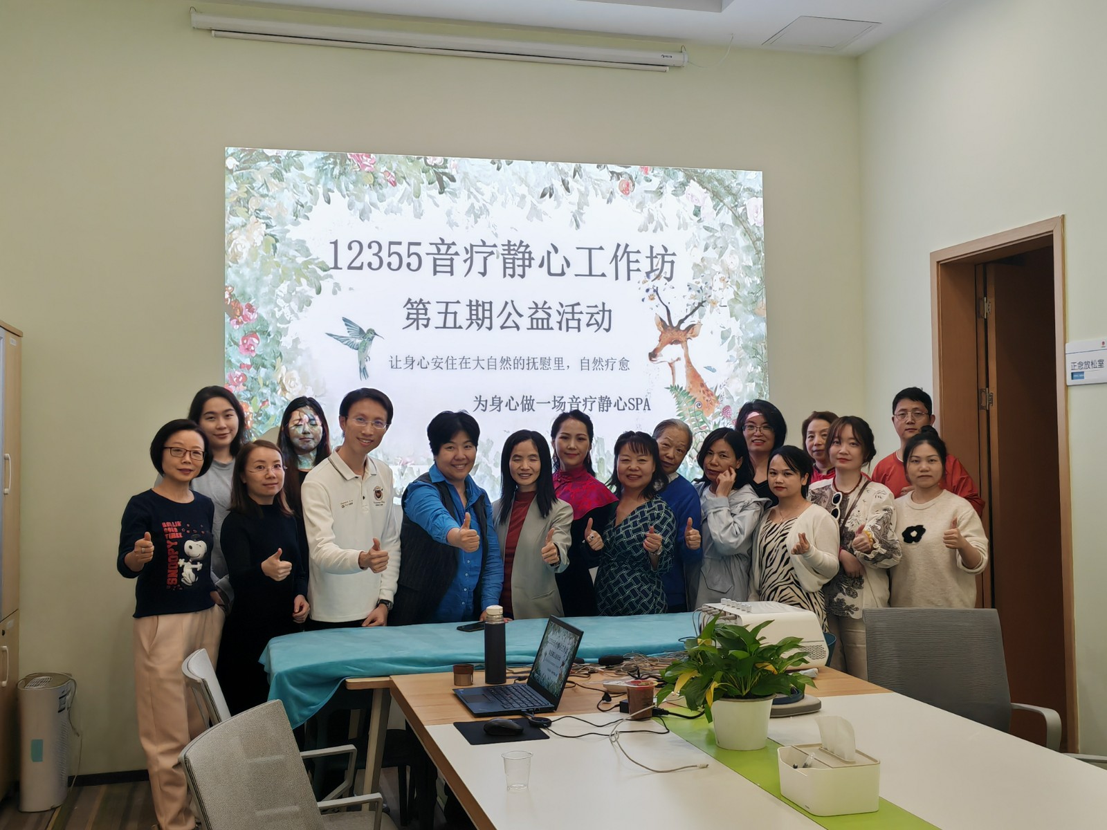 2023年11月14日,【12355音疗静心工作坊】公益活动第1期开启。在体验活动中,国松老师为12355热线咨询的老师们带来了中医五音经络疗法的详细解读,为参与者揭开了音疗静心的神秘面纱。衡艳老师带领大家沉浸于大自然的怀抱,感受大自然声音的疗愈力量。参与者纷纷表示,这是他们从未有过的体验,身心得到了极大的放松。继11月14日首场活动的成功,11月份又相继举办了四场音疗公益活动,场场满员。参与者们沉浸在音疗的魅力中,感受着心灵的洗涤与放松。这不仅证明了【12355音疗静心工作坊】的巨大吸引力,更彰显了公益事业的力量。