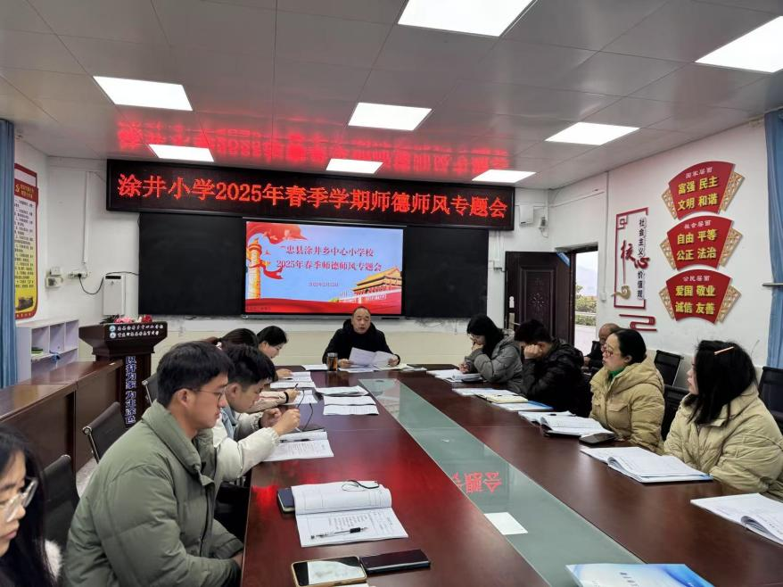 1、为深入贯彻落实习近平总书记关于教师的重要论述和2025年全国教育大会精神,提升教师职业素养,加强师德师风建设,助力学校教育教学高质量发展,2月15日上午,忠县苦志育才学校开展了2025年春季学期师德师风专题会。