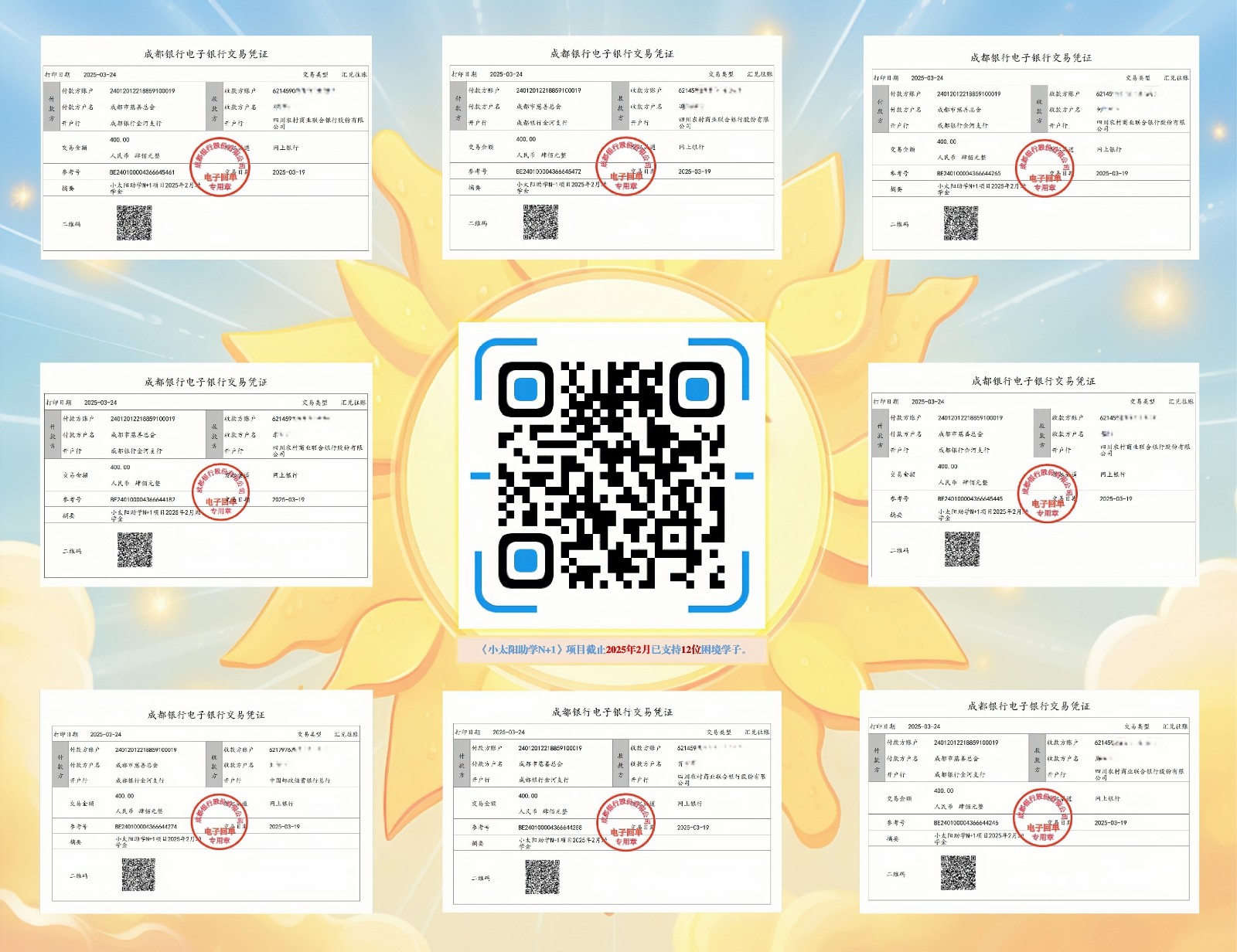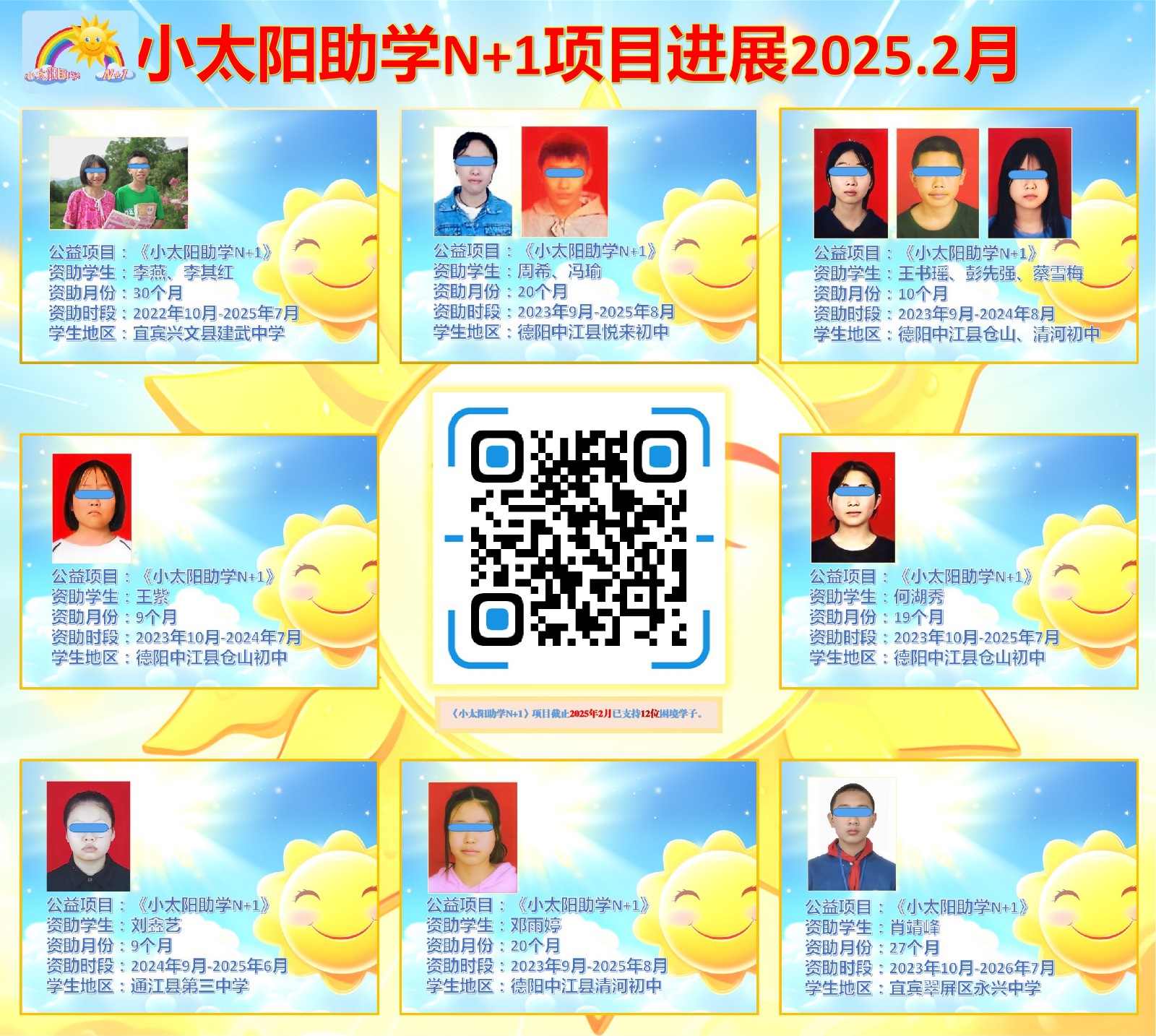 截止2025年2月,小太阳公益团队《小太阳助学N+1》项目组共支持了12位困境家庭的在校学子。本月正常资助8位。总资助165个月份、拨付资助金66000元。