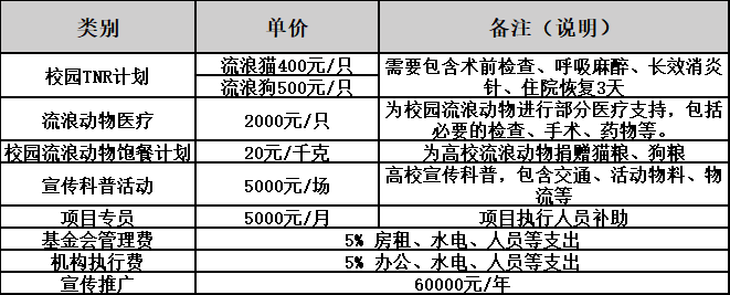 三:按照一定比例,支持高校学子为校内的流浪动物们进行绝育以及医疗救治;
