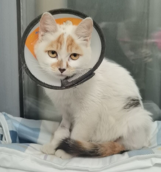 豆皮,小小一只的它被无锡一所高校的学生从垃圾桶里捡出,不知道从何而来,也不知道为何被弃。耳螨、猫癣侵扰着它幼小、羸弱的身躯。雪上加霜的是,豆皮有一天突然被校内疾驰的自行车撞到后腿,骨骼断裂的疼痛让它不得不拖着血肉模糊的伤腿,小心翼翼地向人类乞求一丝生的希望。历时三天,豆皮才被爱心同学送医。