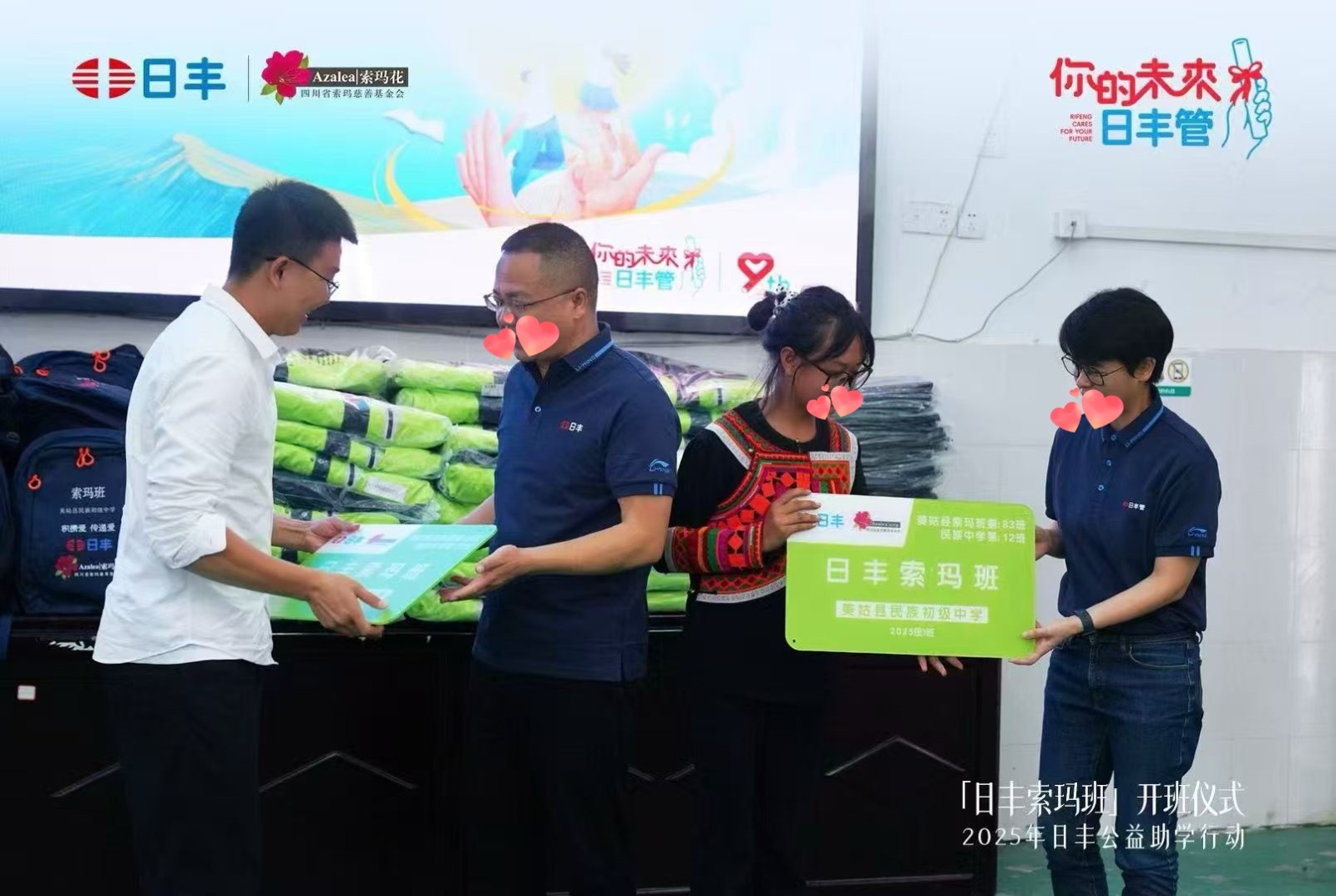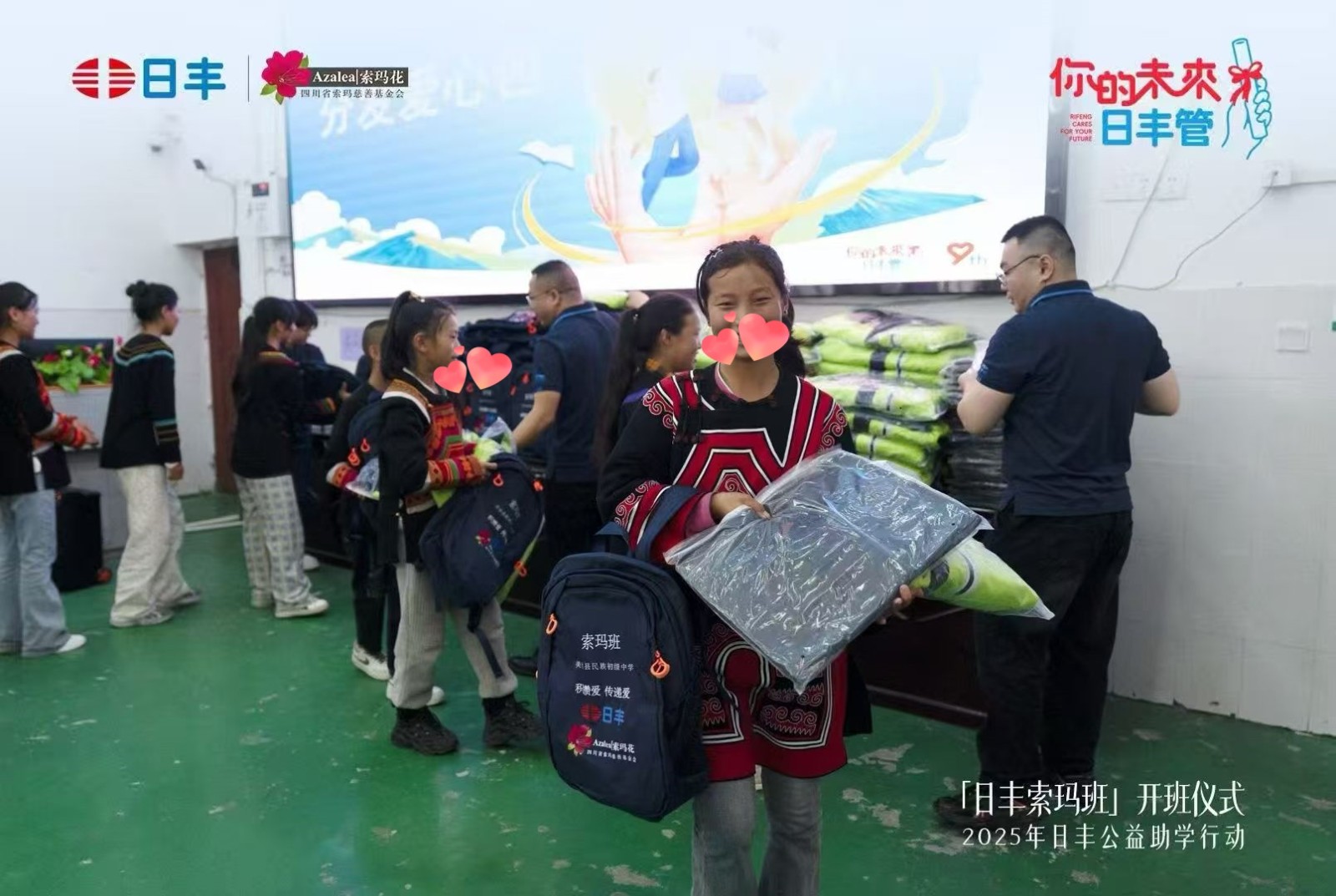 在暑假长达45天的家访旅程中筛选出来的优秀学子,在9月也正式组建进入索玛班中,9月12日,新学年第一个索玛班“日丰索玛班”也正式开班成立了,开班仪式上教育局督学、学校校长、日丰集团负责人以及基金会负责人都对同学们给予鼓励,同时也许以同学们“你的未来我来管”的承诺;